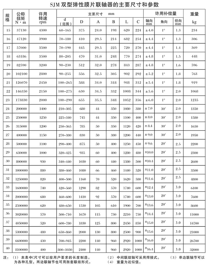 瑞安市寶德隆機(jī)械配件有限公司提供SJM型鍵聯(lián)結(jié)雙型彈性膜片聯(lián)軸器具有拆裝方便,快速安裝等特點,廣泛用于連接/固定輪轂孔和零件的軸,例如齒輪,錐齒輪,鏈輪,葉輪,凸輪,皮帶輪和飛輪等軸的聯(lián)結(jié)固定,咨詢電話:18906872378
