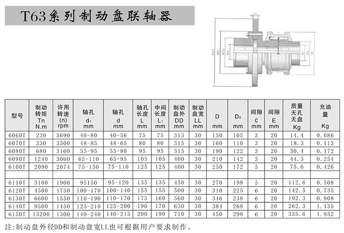 瑞安市寶德隆機械配件有限公司提供T63系列制動盤聯(lián)軸器具有拆裝方便,快速安裝等特點,廣泛用于連接/固定輪轂孔和零件的軸,例如齒輪,錐齒輪,鏈輪,葉輪,凸輪,皮帶輪和飛輪等軸的聯(lián)結固定,咨詢電話:18906872378