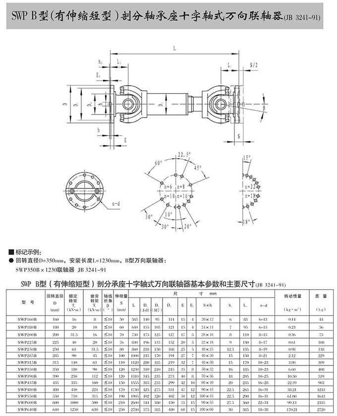 瑞安市寶德隆機(jī)械配件有限公司提供SWP B型(有伸縮短型)部分軸承座十字軸式萬向聯(lián)軸器具有拆裝方便,快速安裝等特點,廣泛用于連接/固定輪轂孔和零件的軸,例如齒輪,錐齒輪,鏈輪,葉輪,凸輪,皮帶輪和飛輪等軸的聯(lián)結(jié)固定,咨詢電話:18906872378